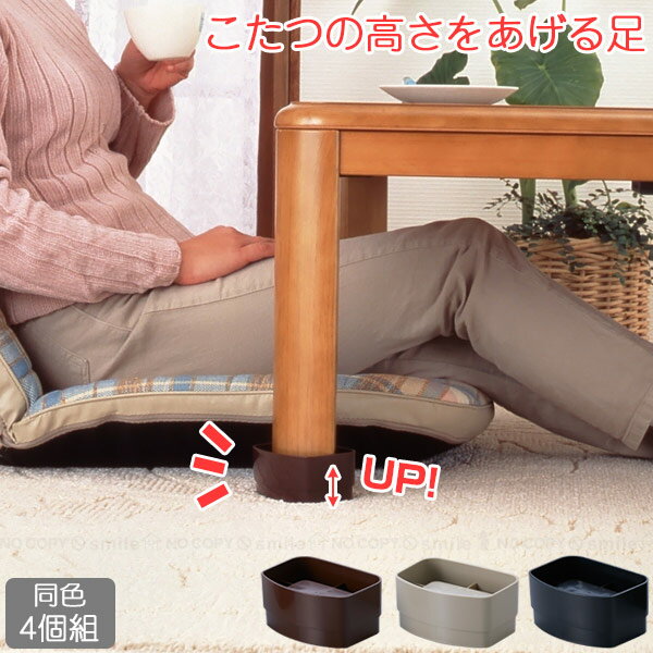 高さの足りない机の下に置くだけ、こたつの高さをあげる足。 座椅子を使ったときに足が当ったり、横向きに寝た際に腰が当たってしまうなどを高さを上げる事で解決。 本商品を2セット使って積み重ねる事で高さがさ