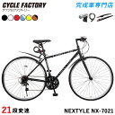 安心の組立・整備済み自転車で街乗りに最適なおしゃれなモデル おしゃれな21段変速クロスバイクに、泥除け、LEDライト、コイルタイプワイヤー錠(カギ)が継続でプレゼントとしてセットになったお買い得な自転