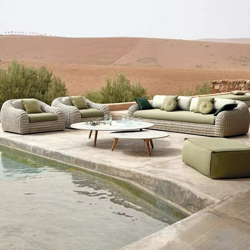アウトドアソファレジャーテラス庭の籐編みソファ北