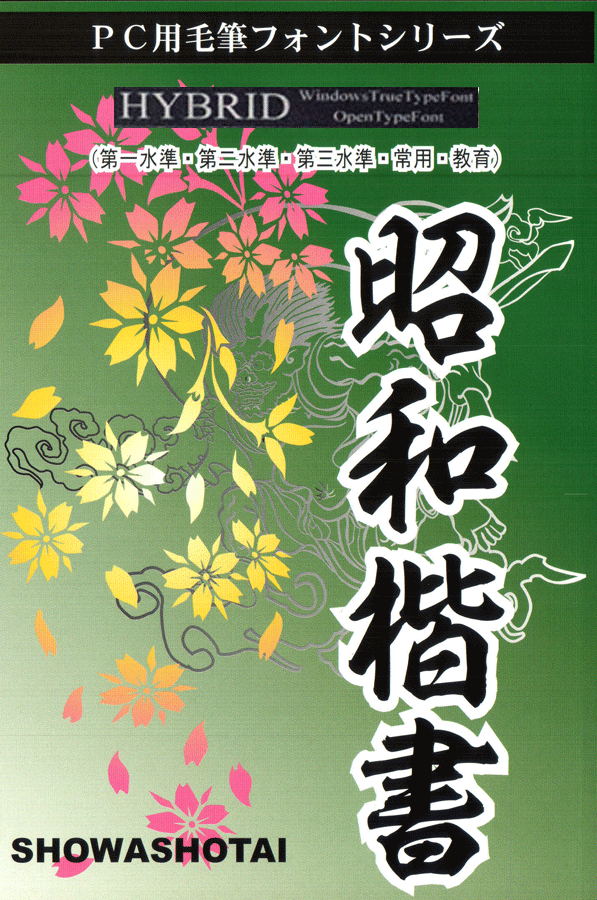 ●オリジナル毛筆フォント 「昭和楷書、昭和行書、雷神、風神、龍神、花神、清龍、昇龍、新太楷書」 「不動、孔雀、地蔵、文殊、勢至、弥勒、観音、普賢、虚空蔵書体」 「太楷書、太行書」 約4300文字(カタ