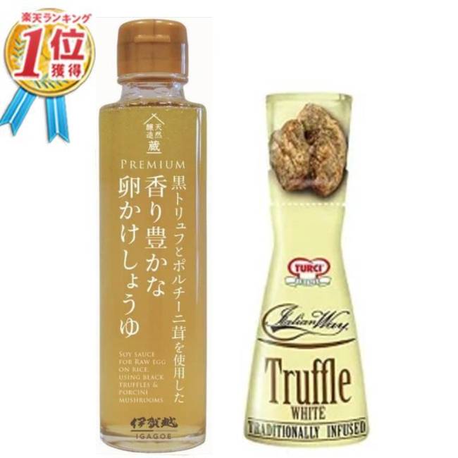 プレゼントにもおススメ!食卓で贅沢な時間をお楽しみください♪ ◆商品名 黒トリュフとポルチーニ茸を使用した 香り豊かな卵かけしょうゆ 150g & トルーチ(TURCI) イタリアンウェイ白トリュフ