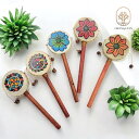 持ち手をクルクル回すとポコポコ鳴るでんでん太鼓です お子様のおもちゃとしても最適です エスニックアートが大人の方にも人気の昔懐かしい でんでん太鼓です ハンドメイドになりますので微妙なカラーの違いやイ