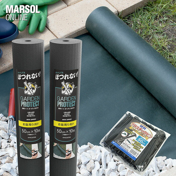 商品仕様 サイズ ・シート:幅約50cm×長さ約10m ・ピン:長さ15cm 材質 ・シート:耐候性強化ポリプロピレン(不織布) ・ピン:再生樹脂 色 ・シート:モスグリーン ・ピン:黒(ブラック)