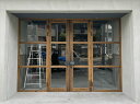164 WD_DR_001 / 無垢材ドア001日本製黒皮の取手と無垢オーク材で製作した扉。 店舗やオフィスに存在感抜群のファサード扉にいかがでしょうか。ラフ仕上げについてBaumの家具は全てラフ仕上