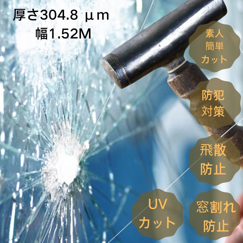 商品情報機能飛散防止UVカット防虫忌避防犯商品説明厚さ 304.8 μm) 幅1.52M長さ お客様の希望メーター数で選択可能フィルムを積層しフィルム強度を増すことで通常の飛散防止性能に加え、防犯性能
