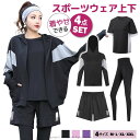スポーツウェア レディース 4点セット 上下セット 体型カバー ランニングウェア フィットネス ウェア ヨガ 大きいサイズ 送料無料