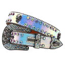 ベルト 男女兼用 スカルヘッド ラインストーン