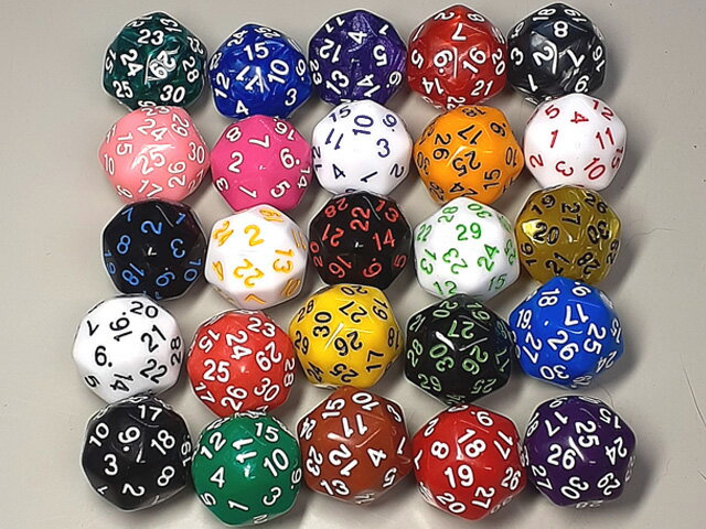一般的なノーマルなサイコロです 全10色 アカ/クロは赤地にポイントがクロ クロ/アカは黒地にポイントがアカ マルチは各面のポイントが別色。 価格は1個の値段です。