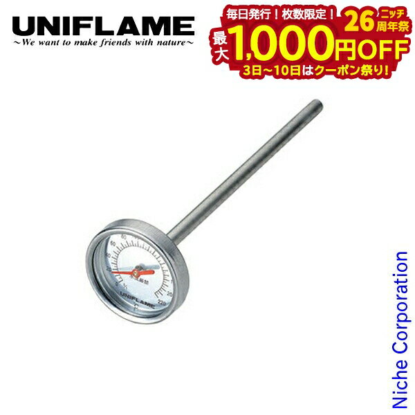 ユニフレーム スモーカー温度計▼温度管理の必需品※水漏れ厳禁※約5.6mm以上の径に差し込んでお使いいただけます[サイズ]全長:約13cm(目盛り部:約Φ3.4cm)[材質]本体:ステンレス鋼目盛り部