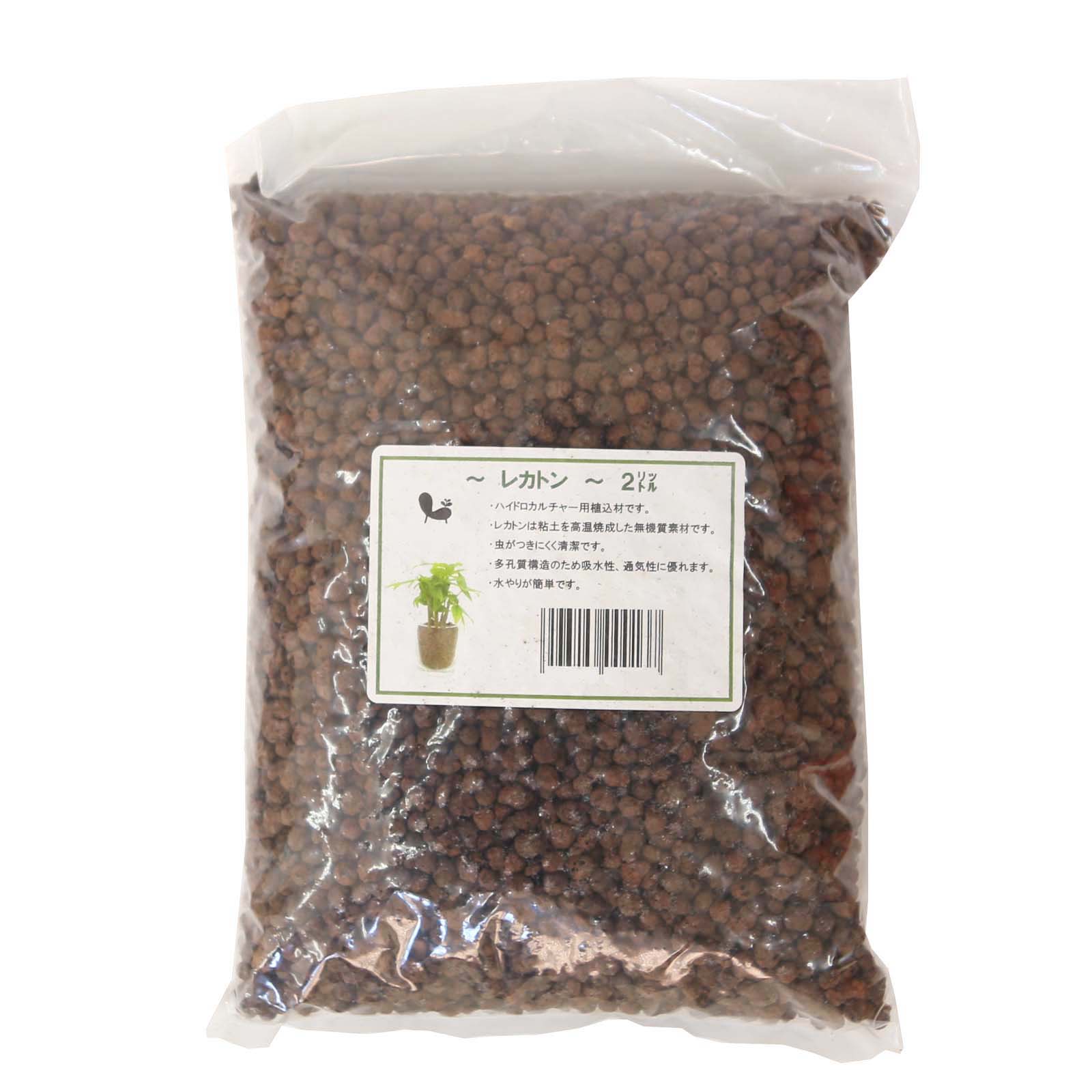 メーカー:プラネット品番:ZLE-002 Mハイドロカルチャーに!レカトン 中粒 2L特長●臭いがありません。●軽くて、虫がつきにくく清潔です。●植物の根をしっかり支えます。●スポンジのように高い吸水