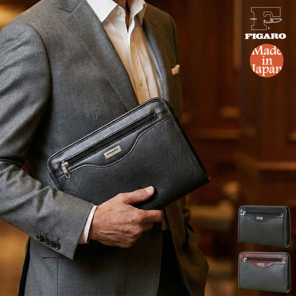 FIGARO クラッチバッグの魅力 軽量でシンプル、リーズナブルながら安心の日本製クラッチバッグ。 スムースレザー風とシュリンクレザー風の合成皮革を組み合わせたデザインで、上品さとカジュアルさを両立。