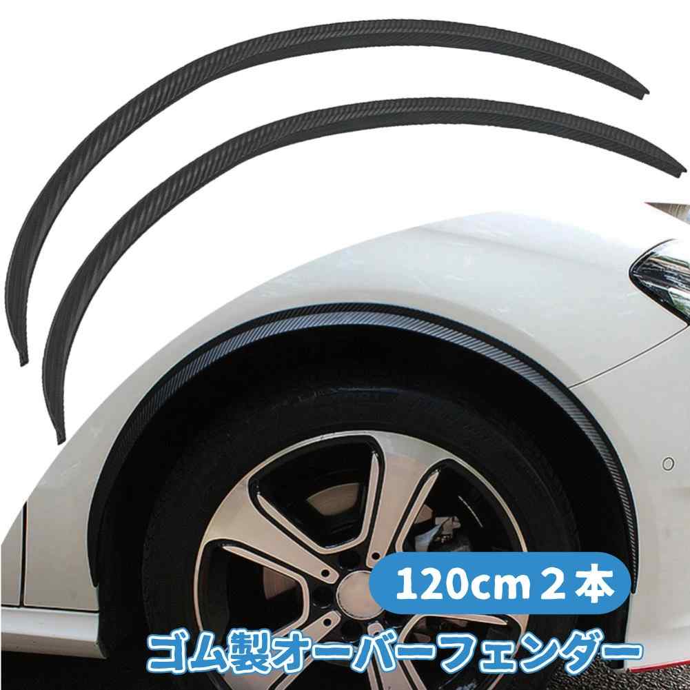 汎用 3Dカーボン調 ゴム製オーバーフェンダー 120cm 2本セット 愛車の足元をスポーティーにドレスアップ! 15インチ程度の普通車などにおすすめのサイズです。 柔軟なゴム素材で、複雑なホイールア