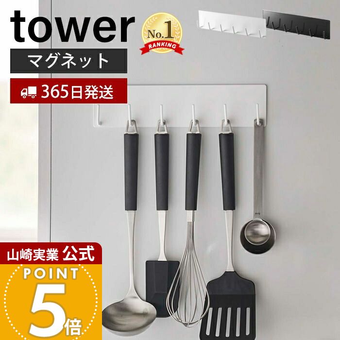 商品名 tower マグネット可動式キッチンツールフック タワー【 フック可動式(5連) 】 カラー(型番) ホワイト(5022) ブラック(5023) 商品サイズ 約W35×D3.5×H4cm 重量
