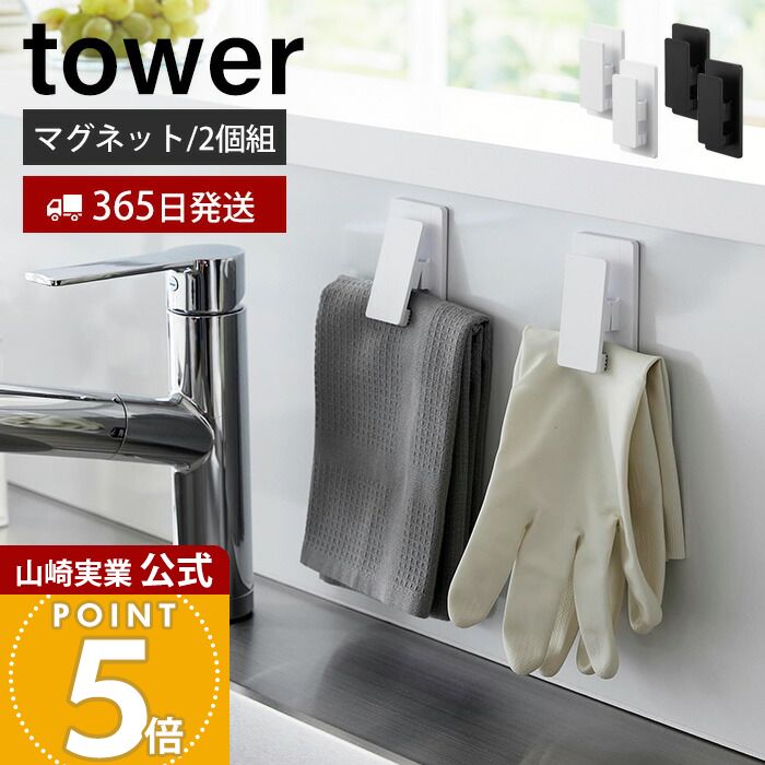 マグネットクリップタワー 2個組 大きいクリップで しっかり挟める 磁石が付く壁面に取り付けできる『 tower( タワー )マグネットクリップ 2個組 』。冷蔵庫横やキッチンパネルに設置して、布巾や