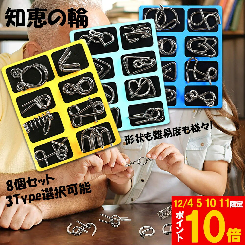 知恵の輪 遊び 玩具 知育 子供 大人 教育 勉強 楽しい 夢中 謎解き知恵の輪のお得な8点セット!!あなたにこの謎は解けますか??遊び方は簡単!!2つのリングを力を入れずに外せれば成功です!!8個入