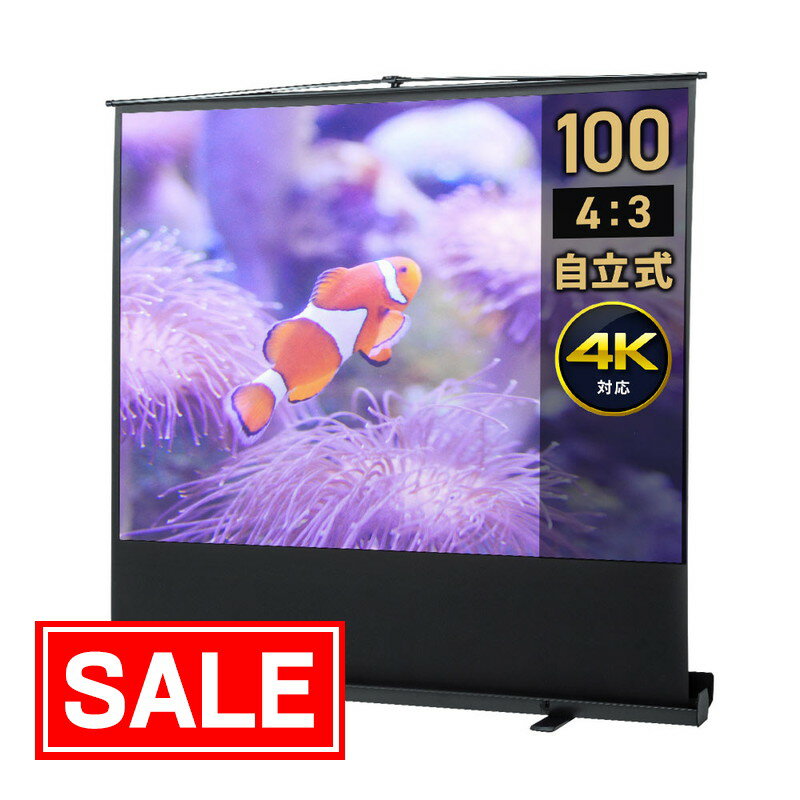 100インチ(4:3)対応のプロジェクタースクリーンです。置いて引き出すだけの簡単設置!自立式で床置きで使えます。<特長>●自立式で床置きで使えるプロジェクタースクリーンです。●置いてスクリーンを引き