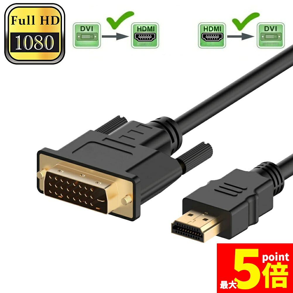 【送料無料 ポスト投函】 HDMI搭載パソコンからDVIのディスプレイに接続する為の変換ケーブル。 双方向HDMI to DVI変換ケーブルは DVI付くのパソコンがHDMIインターフェース付くのHD