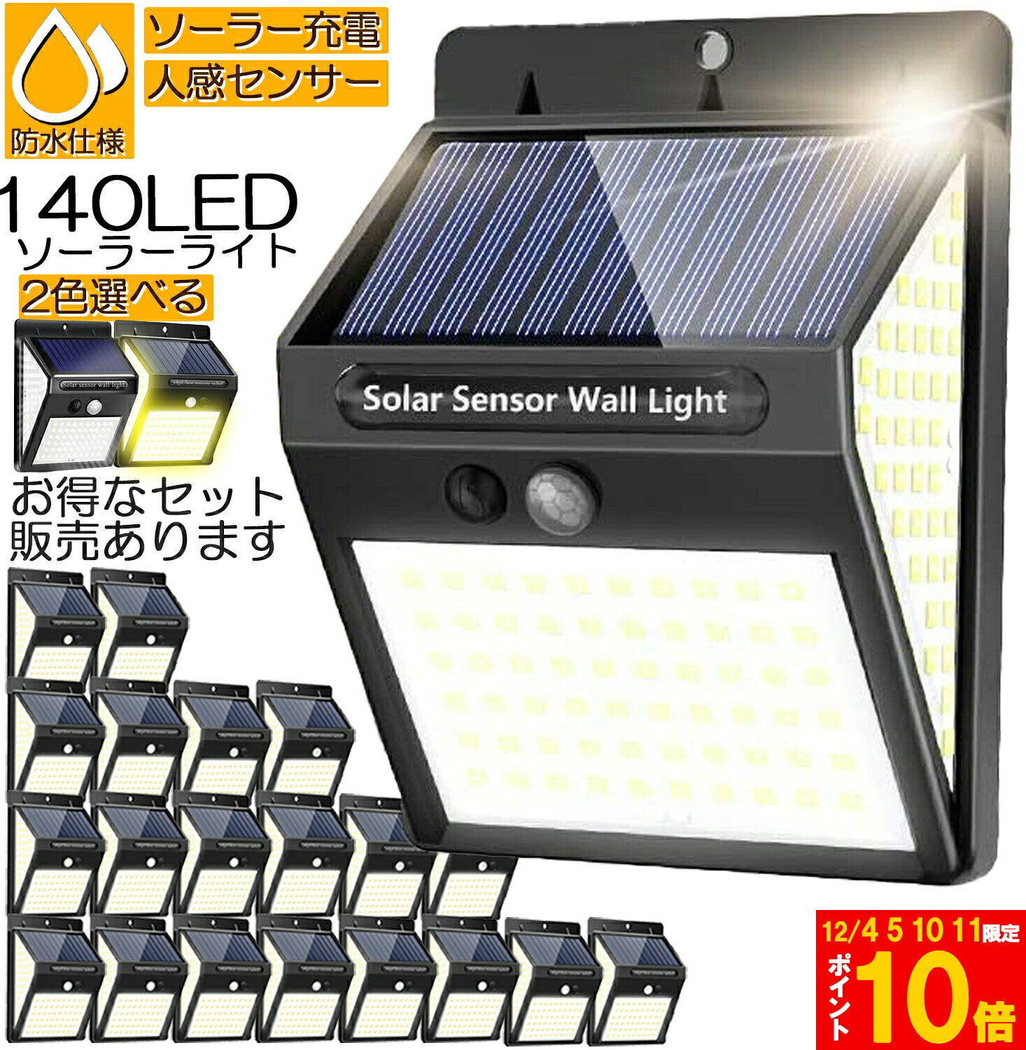 【最新版高輝度140LED・3面発光】140 LEDライトを搭載しているLEDソーラー式センサーライトをご提供致します。3面発光、以前よりも大きい側面ので、照射範囲が300°達成しました。バッチリの照