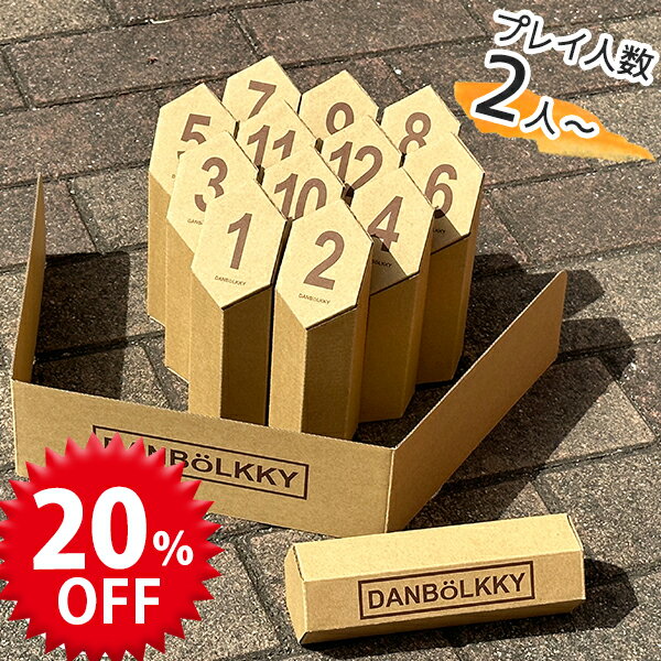 フィンランド発祥のスポーツ「モルック」を室内でも手軽に遊べるように、ダンボール素材で作った商品「ダンボルック」です♪モルックを投げてスキットルを倒して得点を加算してピッタリ50点獲得したら勝ち!簡単な