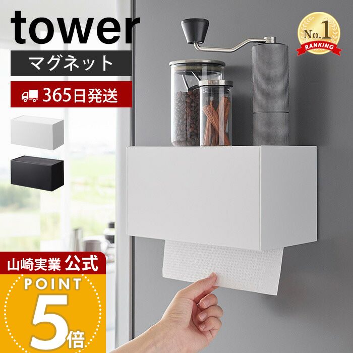 tower(タワー)マグネットトレー付きペーパータオルディスペンサー 山崎実業 ティッシュケース マグネットトレー付きペーパータオルディスペンサー タワー 2192 2193 ペーパータオルホルダー