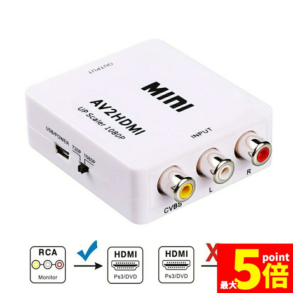 商品詳細 商品説明 AV to HDMI コンポジット RCA 変換 電源 コンバーター 出力 変換器 変換アダプタ RCA入力→HDMI出力 HDMI 2AV RCAアナログ信号をHDMIデジタル信