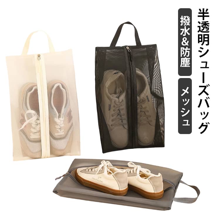 撥水&防塵メッシュ半透明シューズバッグファスナー付きで開け閉め簡単、上履き・運動靴・ハイカットもスッキリ収納。子供から大人まで対応!旅行やスポーツ、通学、出張など、さまざまなシーンで活躍するシューズ入