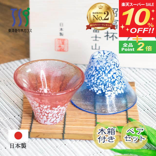 【包装のご案内】東洋佐々木ガラス 招福杯 富士山 冷酒杯揃え(青・赤) + 木箱入 (G635-T72)杯を伏せると雪を頂く美しい富士山の姿が現れます。富士山青・赤のペアセット 眺めてもお酒を飲んでも
