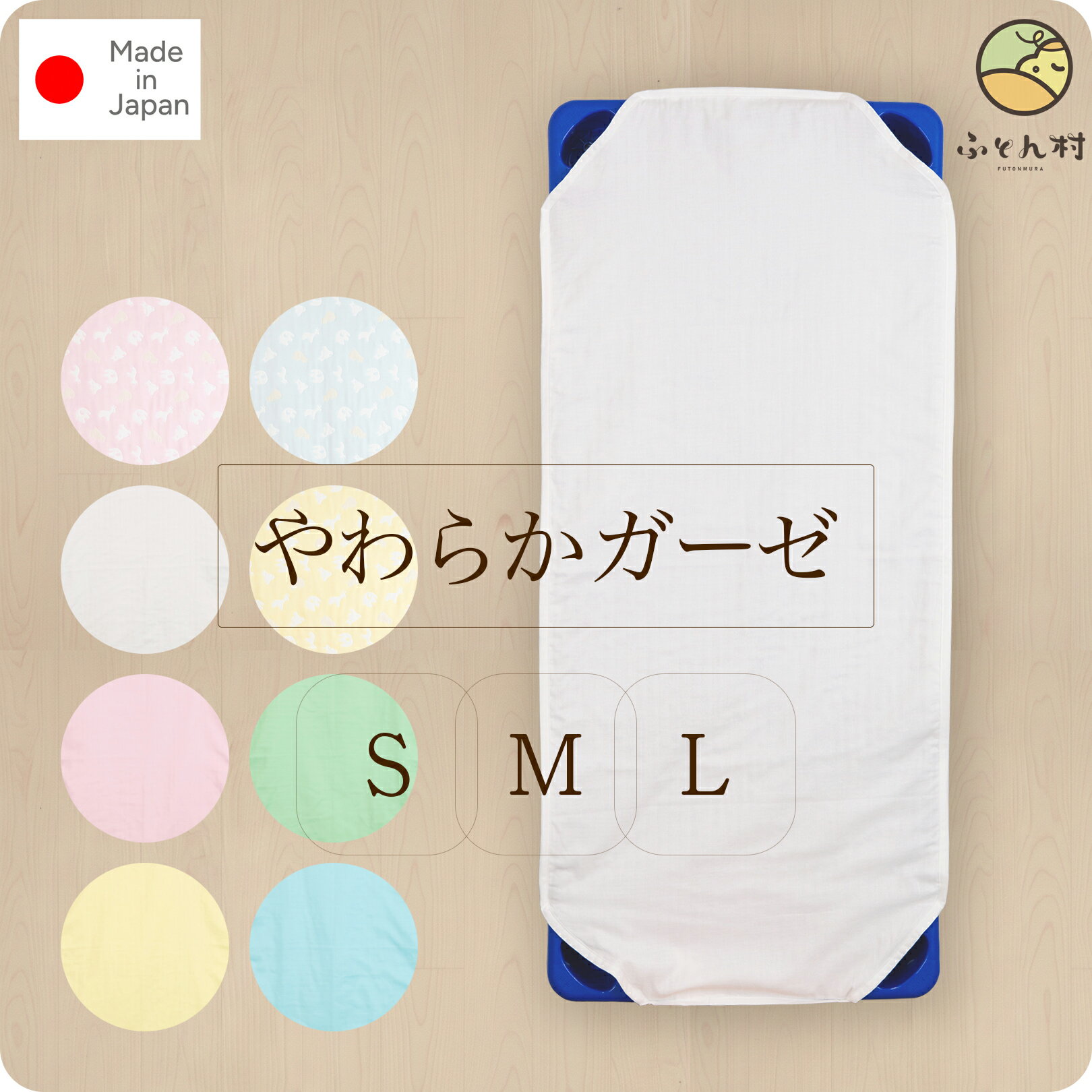 商品説明素材・綿100% 重量 ・約300gサイズ・寸法:60×130cm ・ゴム一本の長さは25cm(伸ばさない状態)。 ・32cmまで伸ばせる。特徴 ・四隅ゴム付きで、敷布団にぴったりフィットしま