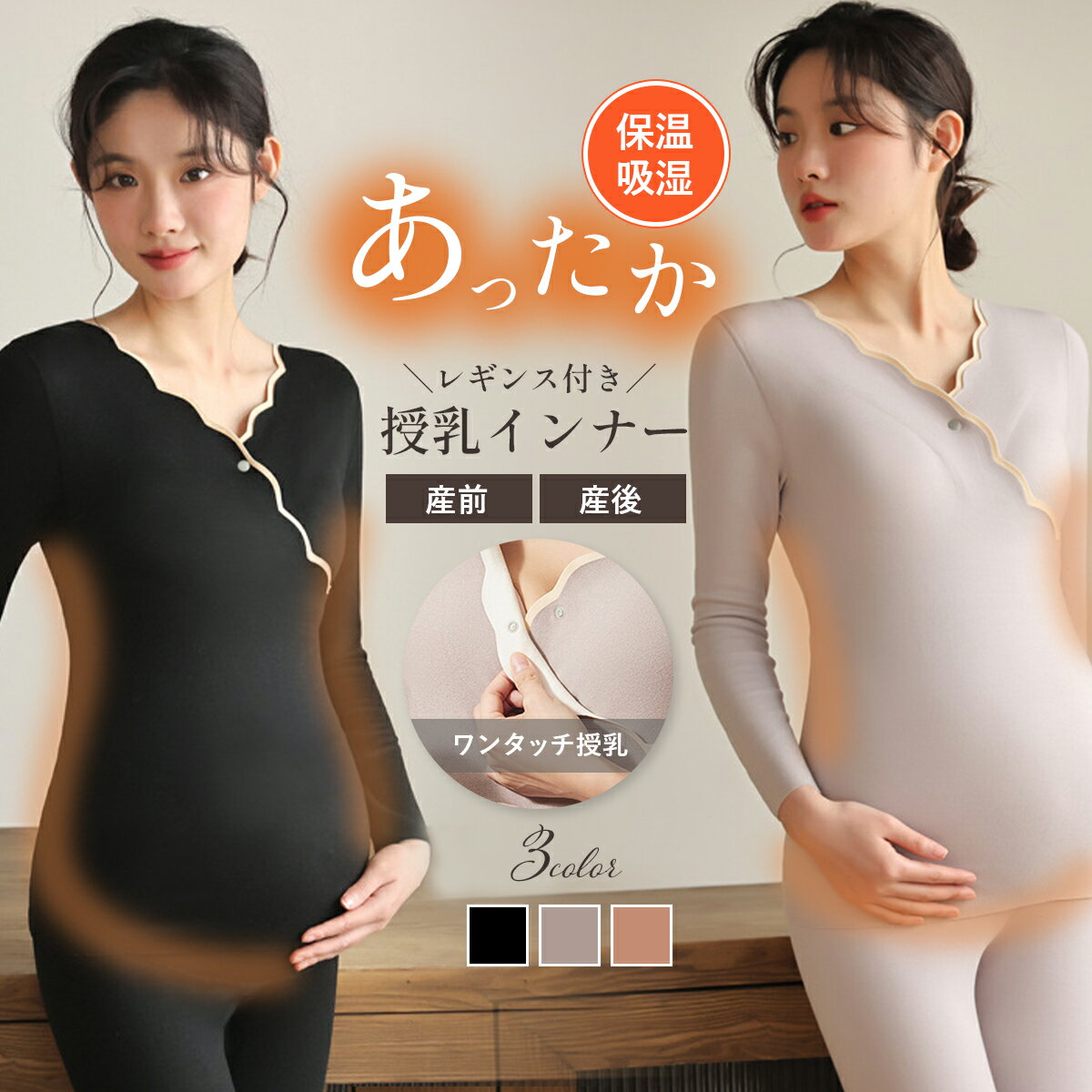 商品情報商品説明・保温・蓄熱・吸湿素材を採用し、冷えが気になる季節でもしっかり暖かさをキープ。外出先でも安心のあったか仕様です。・柔らかく伸縮性のある生地で、どんな動きにもフィット。授乳中も快適な着心