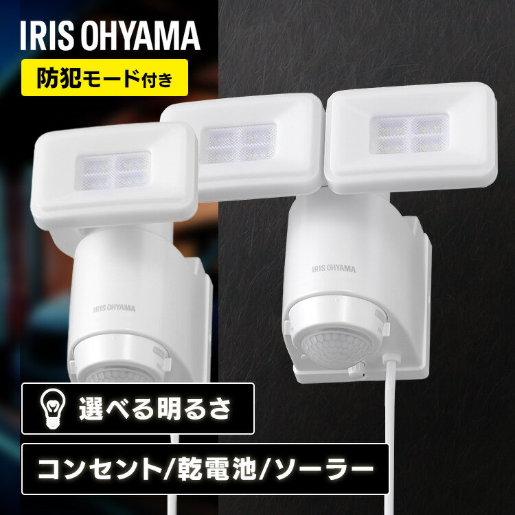 ライトの方向自由自在!大人気のどこでもセンサーライトにダブルが登場! ・フリーアームでこれまでにない自由な配光。乾電池式で配線不要。 ・近づくとセンサーでパッと自動点灯。照明・防犯・節電に。 ・ダブル