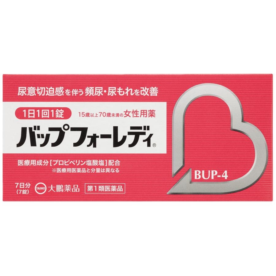 商品情報■ 特徴バップフォーレディは、膀胱の異常収縮を抑制することで、尿意切迫感、尿意切迫感を伴う頻尿や尿もれを改善する女性専用のお薬です。これら過活動膀胱症状によって低下した日常生活を向上することが