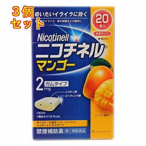 商品紹介 ●ニコチネル マンゴーはタバコをやめたい人のための医薬品です。 ●禁煙時のイライラ・集中困難などの症状を緩和し、禁煙を成功に導く事を目的とした 禁煙補助薬です。(タバコを嫌いにさせ