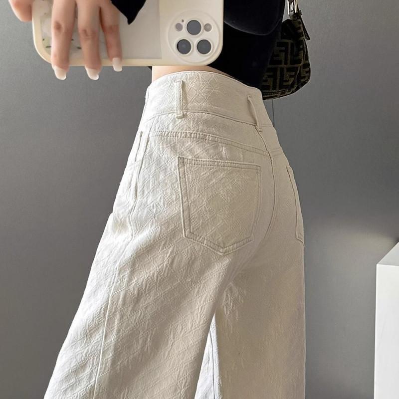 レデイースデニムパンツ 七分刺繍ゆったりジーンズ